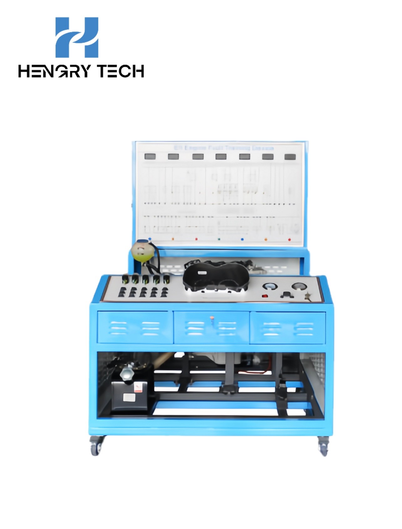 HR-QC05 Efi Engine Fault Training Device is made on the basis of the devices of electronically controlled gasoline engine, which includes: engine assembly, starter assembly, generator assembly, ignition system assembly, intake/exhaust system assembly, engine electronic control unit (ECU), all sensors, all actuators, combined instrumentation, ignition switch, Batteries and fuel tanks and other normal working devices, and additional teaching aids: panel circuit schematic, fuel pressure gauge, vacuum gauge, LED display lights, digital voltmeter, fault setting module, removable stand, supporting equipment manuals, etc..